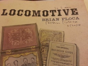 But his generosity didn’t end there. He waited in line and managed to grab me a signed copy, yes, a signed copy of Caldecott Medal winner Brian Floca’s book Locomotive! (Read my review of Locomotive Here.)