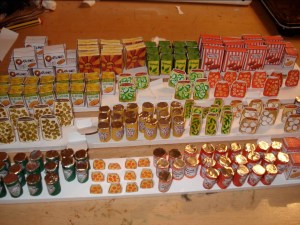 Oh my goodness, I love the tiny orange and yellow quilt on the bed, and the tiny food boxes, and the tiny plush kitties! Thanks for sharing, Harriet, and much success with all of your books!