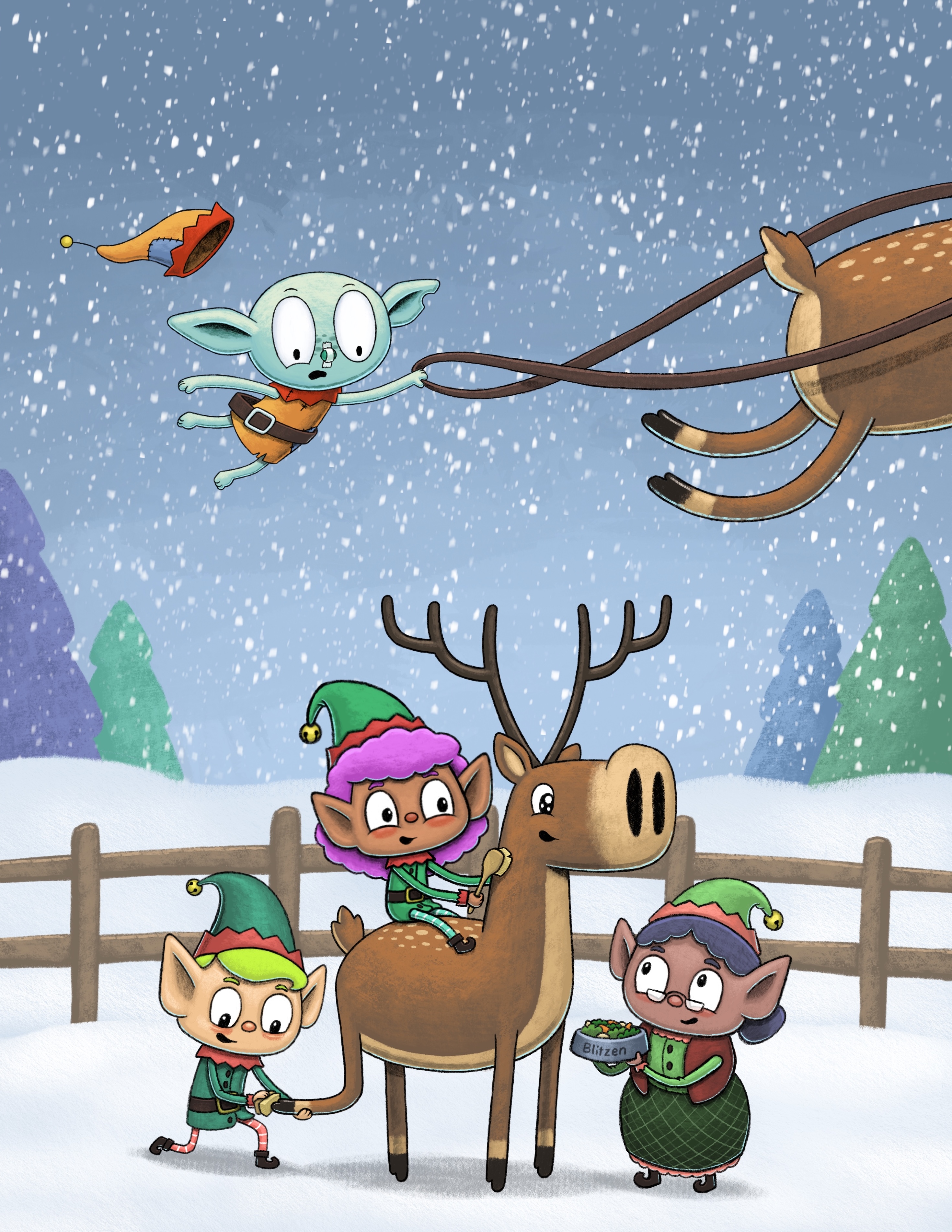 AW: Thank you so much! In Elves Are the Worst!, Gilbert the Goblin is back with a fresh set of complaints, this time about elves. He decides to go undercover to Santa’s Workshop, disguised as an elf, to prove that goblins are just as hard working as any elf.