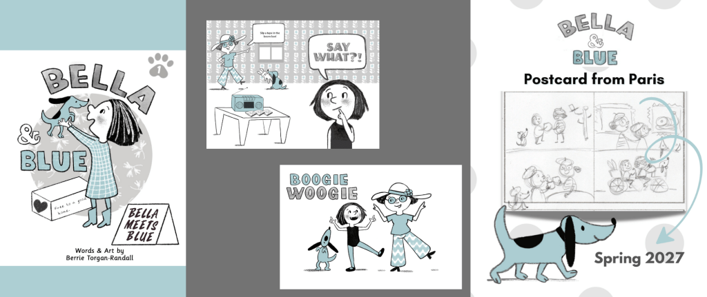 Please welcome children’s book author/illustrator Berrie Torgan-Randall to Frog on a Blog! You may be familiar with the first book in her Bella & Blueearly reader graphic novel series, Bella & Blue: Bella Meets Blue, which came out a few years ago by The Little Press. And, if you’re a fan, you’ll be thrilled to know that the second book in the series is due out in 2027. (Plus, you can win a copy of Bella & Blue: Bella Meets Blue by leaving a comment on this post!)