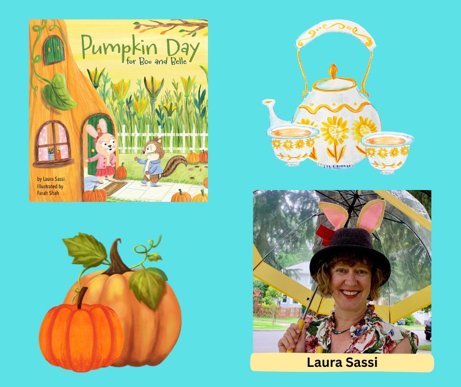 Laura has visited Frog on a Blog before, which I love, and you can see her interview and other guest post Here and Here. Today, she’s stopped by to share Six Tips for Hosting a Picture Book Tea Party as well as more about her new book. Be sure to read to the end for a chance to win a copy of Pumpkin Day for Boo and Belle! Let’s hear from Laura!(All text and images are copyrighted by the author and illustrator.)