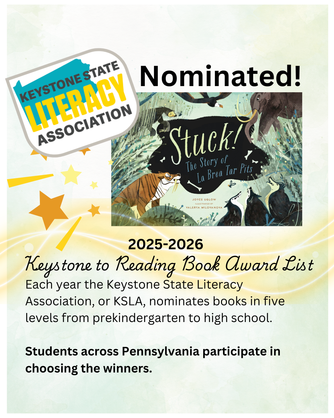 I’m so excited to welcome picture book author, poet, and educator Joyce Uglow to Frog on a Blog! Joyce’s beautiful nonfiction picture book Stuck! The Story of La Brea Tar Pits published in March by Bushel & Peck Books and features gorgeous illustrations by Valerya Milovanova.