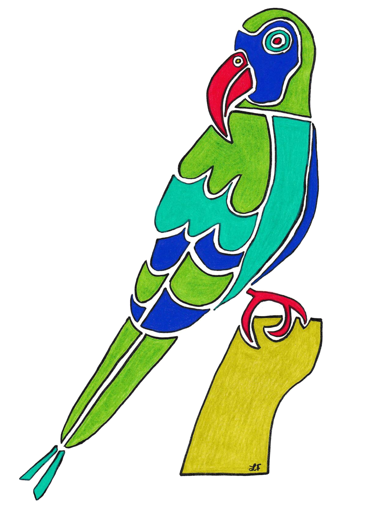 To purchase products featuring my original stylized parrot designs in seven different colors, please click HERE.